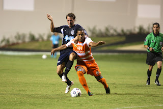 En los primeros minutos del primer tiempo la ofensiva del conjunto de los Carolina RailHawks comenzó a llegar cuando en los primeros segundos Nick Zimmerman hizo el primer intento a la meta de Richard Martin. Luego de varios intentos por parte del conjunto visitante, el primer gol de los RailHawks llegó al arco de Martin, cuando el delantero Brian Ackley anotó el 0 – 1 tras el cobro del tiro de esquina de Mike Palacio.