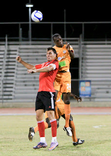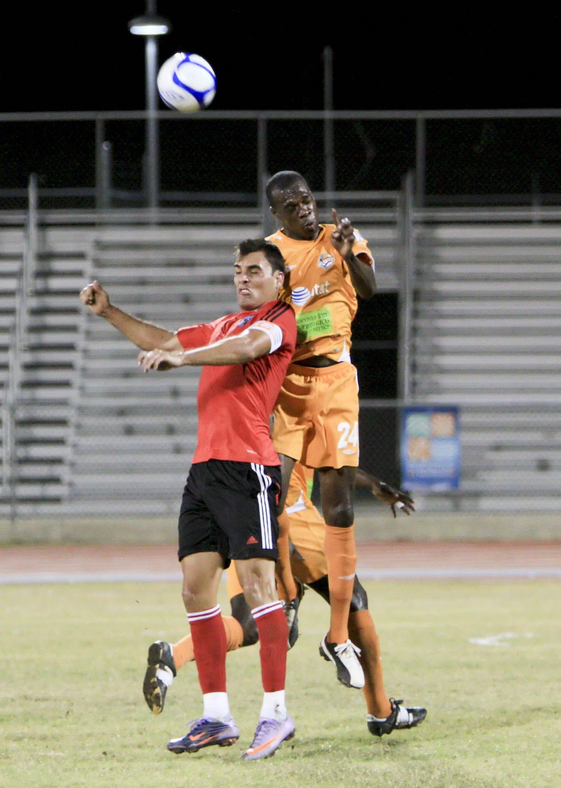 | Nigel Henry y Mauricio Salles luchan por un balón en el encuentro del pasado jueves 2 de diciembre. Foto por Jacobo Merced |