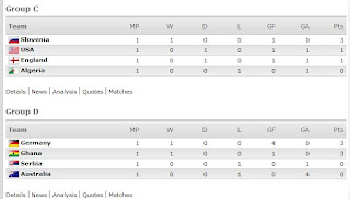 Sudáfrica- Con una sorpresiva victoria de Eslovenia sobre Argelia y finalizando con la primera goleada del torneo provista por Alemania a Australia cierra el 3er día del mundial. Con el cierre del grupo D, se augura mejor futbol del que se ha visto, ya que faltan equipos de nombre como Holanda, España, Brasil, entre otros.