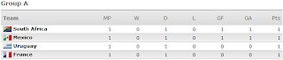 El defensa del Barcelona FC, Rafael Márquez, aguo la fiesta sudafricana al anotar el segundo gol del torneo internacional. En un grupo como el grupo A, el empate parecía que no le beneficiaba al tri. La prensa mexicana estuvo criticando la selección de su país por el mal rendimiento del equipo. Pero al comenzar el partido entre Uruguay y Francia la situación en el grupo A cambiaria drásticamente.