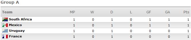 Con este doble empate el grupo A de la Copa Mundial queda de la siguiente manera: