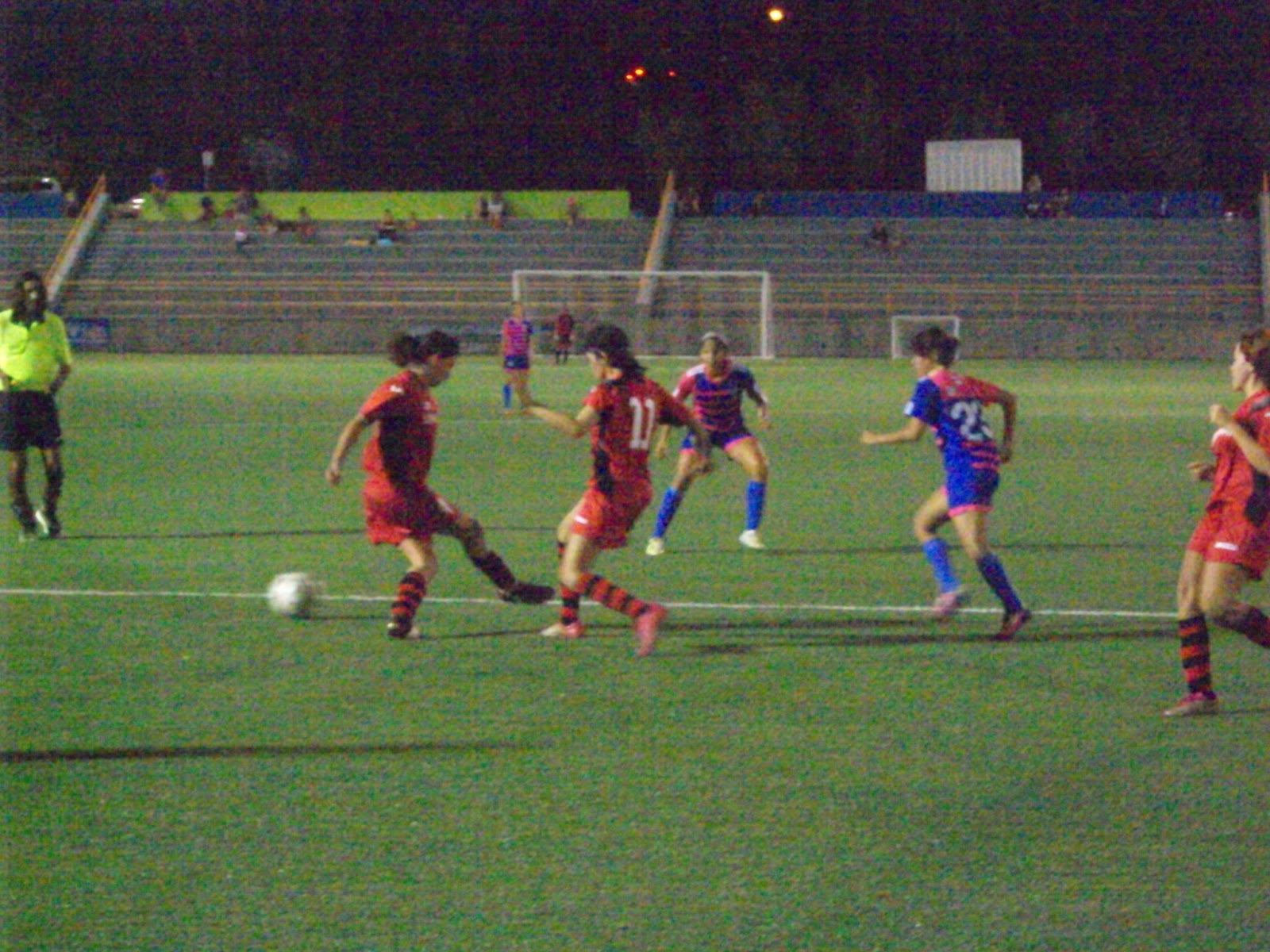Las Samaritanas pudieron aguantar el embate ofensivo de las Vaqueras por los primeros 10 minutos, gracias a acciones defensiva individuales de las hermanas González, Giuliana Abreu, y de la portera Jessica Bernard. Pero al minuto 14 Noelia Reyes abriría el marcador con un tiro de larga distancia, forzado en parte por la defensa de las Samaritanas, que no permitía espacios dentro del área de penal.