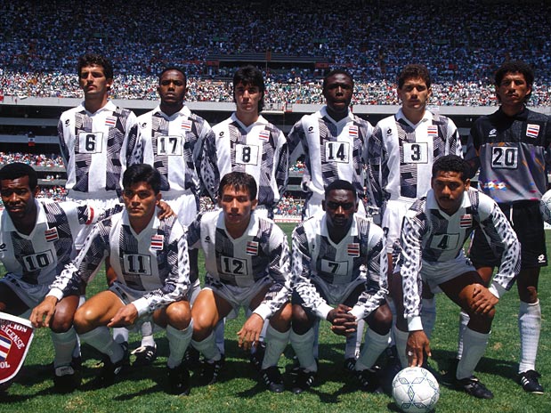 Dignísimo. Con el Estadio Azteca como escenario, Costa Rica compartió la tercera posición con Jamaica en la edición de 1993. Ese día alinearon, de pie en el orden usual, Javier Delgado, Maximiliam Peinado, Geancarlo Morera, Floyd Guthrie, Luis Marín y Fernando Patterson. Al frente, en el mismo orden: Juan Cayasso, Luis Cálix Castro, Johnny Murillo, Michael Myers y Erick Mata. (Mexsport)