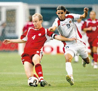 Primer torneo oficial de Bryan Ruiz. La Comadreja jugó su primera competición oficial con la selección mayor en la Copa de Oro de 2005, donde enfrentó al canadiense Kevin McKenna. (La Nación)