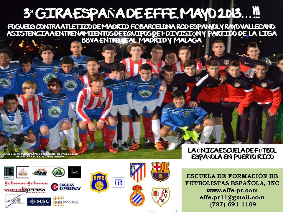 Esta vez, EFFE contará con un equipo U13, y se enfrentarán ante las inferiores del FC Barcelona, Atlético de Madrid, Rayo Vallecano, y el RCD Espanyol. La gira comenzará el viernes 17 de mayo y concluirá el sábado 25 de mayo de 2013.