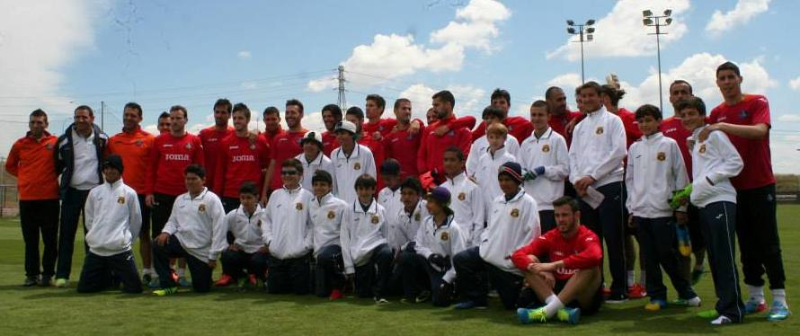 Los jóvenes de EFFE con los integrantes de la plantilla del Getafe |