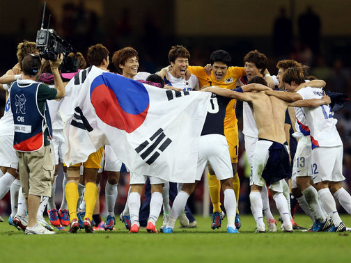| Los surcoreanos celebran eufóricos la victoria ante Japón. |