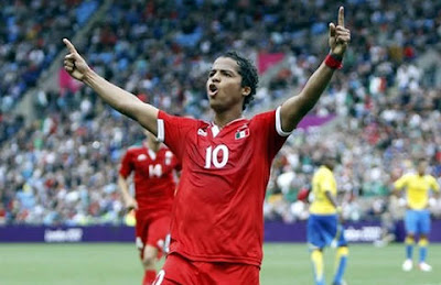 | Dos Santos celebra uno de sus goles en la victoria mexicana. |