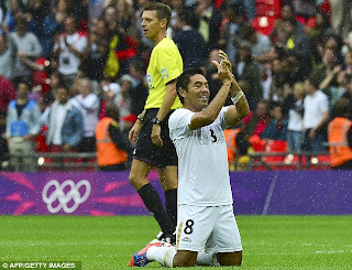 A primera hora se enfrentaron los mexicanos y japoneses en el Wembley Stadium y con un resultado que alegra a los latinos, por el pase de la Tricolor con una victoria de 3-1 sobre los nipones. En un partido que el equipo que dominaba cambió constantemente, los japoneses fueron los primeros en dar el golpe, cuando al minuto 12 Keigo Higashi pasó al centro para que Yūki Ōtsu disparara desde fuera del área penal, para poner a los asiáticos arriba en el marcador. A pesar del gol japonés, la diferencia en desempeño de cada equipo no era tanto, ya que el partido era uno luchado en el mediocampo y no tenía mucho acercamiento a las porterías. Pero al acercarse la media hora de partido, los aztecas comenzaron a tener mejor manejo de balón, ideas más concretas y mayor conexión de pases. Y esto se hizo aún más obvio al minuto 32, cuando Marcos Fabián, en un tiro de esquina cobrado por Giovani dos Santos, puso el empate de cabeza. Lo memorable de este gol es la corta estatura de Fabián (5’7’’), pero su increíble habilidad para desmarcarse, muy semejante a la de su compatriota Javier “Chicharito” Hernández, le permite marcar goles de muy buena calidad. Así concluyó la primera mitad, con un México que no obstante el marcador empatado, eran superiores a sus rivales. Al comienzo de la segunda mitad tuvo que salir del campo dos Santos, con una lesión muscular que lo tiene en duda para el partido por el oro. Pero la salida de dos Santos no afectó la estrategia de juego de los centroamericanos, en cambio la entrada de Raúl Jiménez revitalizó el ataque. Al minuto 65, luego de que el portero Schūichi Gonda atajara un tiro de Oribe Peralta y pasara a Takahiro Ogihara para que distribuyera el juego, Ogihara perdió el control del balón, dejando a Peralta con un tiro cómodo a puerta para tomar la delantera en el marcador. Hasta este momento el mayor enemigo de los asiáticos no era la falta de llegadas, sino concretar en goles esas llegadas. Como hizo los mexicanos al minuto 93, cuando Peralta habilitó a Javier Cortes con un taco al borde del área con el cual definió el partido. En cuanto efectividad los mexicanos fueron mucho más superiores que los japoneses, que carecieron de esta y no preocuparon casi al portero José Corona.