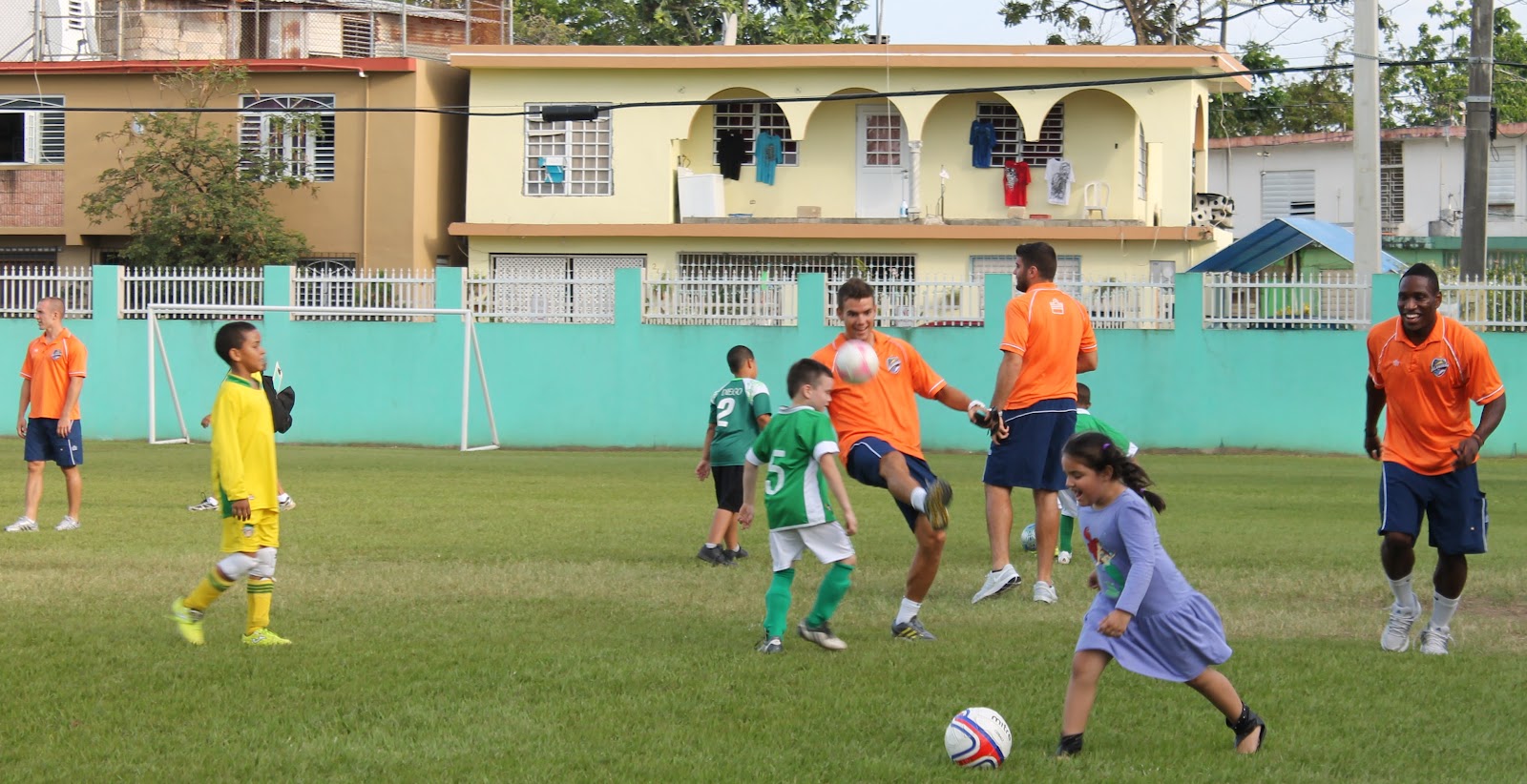 Los niños del equipo de fútbol de la Obra Salesiana del Oratorio San Juan Bosco de la Península de Cantera disfrutaron de una tarde de clínicas y sorpresas con los jugadores de los Puerto Rico Islanders FC. Como parte del proyecto de responsabilidad social Soccer For You, cerca de 40 niños se dieron cita para compartir con la mitad de la plantilla de los jugadores y recibir una donación de uniformes y equipo.