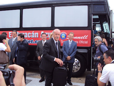 Vicente del Bosque escasos minutos despues de aterrizar en Puerto Rico con la Roja.