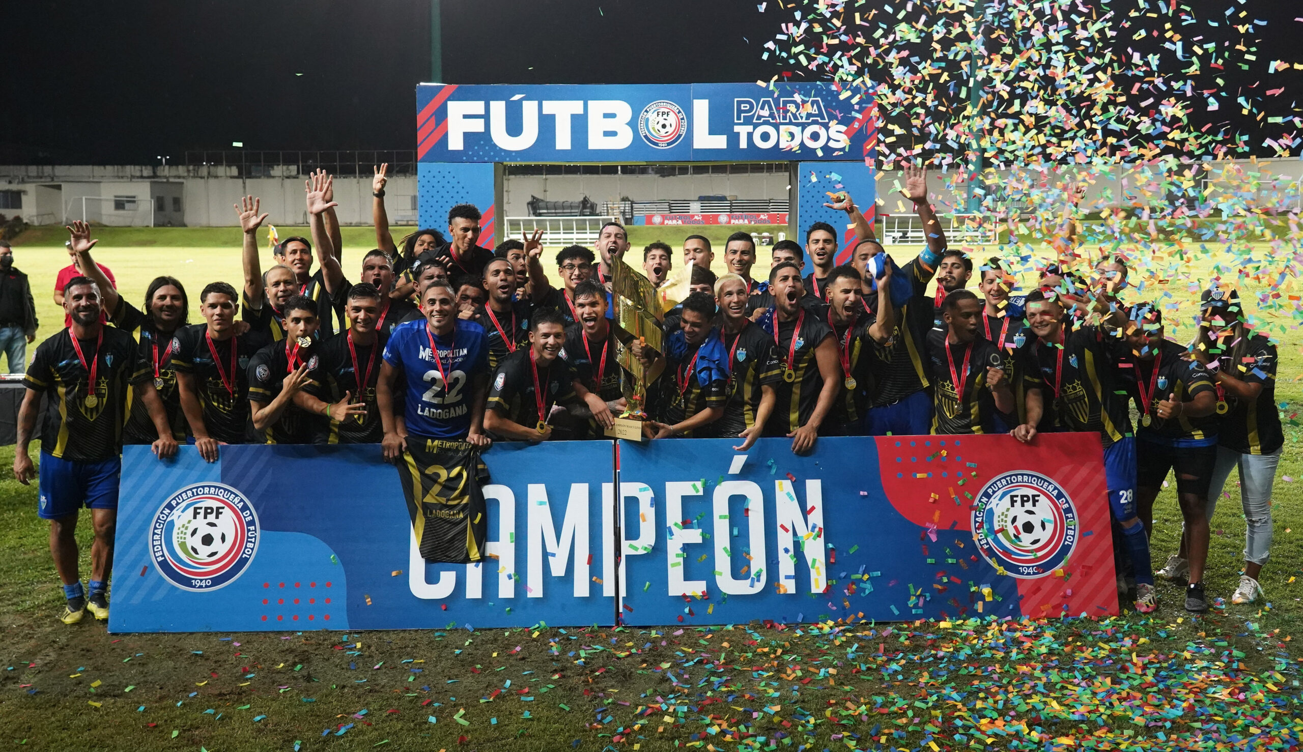 BAYAMÓN, Puerto Rico – Metropolitan Football Academy se convirtió el pasado sábado en la noche en el nuevo campeón del torneo masculino de la Liga Puerto Rico (LPR) de la Federación Puertorriqueña de Fútbol (FPF), al derrotar vía goleada, 5-0, a Puerto Rico Sol. FBNET estimó que sobre 1,500 espectadores se dieron cita al Loubriel para presenciar la goleada del Metropolitan al Puerto Rico Sol.