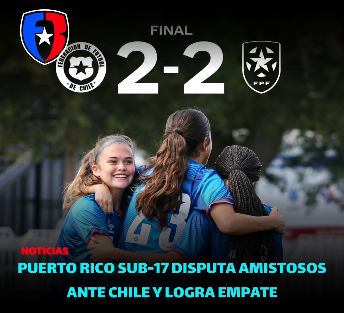 Caguas, Puerto Rico – La Selección Sub-17 Femenina de Puerto Rico disputó esta semana sus primeros enfrentamientos internacionales ante el equipo nacional de Chile. Ambas selecciones nunca se habían enfrentado previamente en esta categoría. Los encuentros se llevaron a cabo en el CAR José Sultana Silva, en Chile, como parte del proceso de preparación del conjunto boricua.