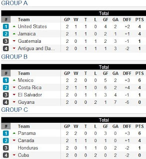 En enfoque, el partido de Antigua y Barbuda vs. Jamaica celebrado en el Sir Vivian Ricketts Stadium de North Sound, Antigua, finalizó en un desabrido empate. Con pocas acciones de peligro en el transcurso del partido, los locales se dedicaron a tratar de generar remates a gol. Esas pocas que se generaron el portero jamaiquino Dwayne Miller, jugando en lugar del lesionado Donovan Ricketts, respondió manteniendo el marcador en 0. Para Antigua y Barbuda resulta en una oportunidad perdida para sumar de a tres y para Jamaica significó rescatar un punto desde Antigua, y así mantenerse por otra fecha en el tope del grupo A. El otro partido del grupo transcurrió con emoción y un poco de agonía para los locales. En un partido que mantuvo a todos al borde del asiento los guatemaltecos rescataron un merecido empate al final del partido. A pesar de la superioridad de Estados Unidos ante los locales, el partido finalizó en un 1-1 con un fantástico gol de Marco Pappa en el minuto 83. El gol estadounidense vino de parte del momentáneo máximo goleador de USA, Clint Dempsey (min. 40), luego de recibir la asistencia de parte de Fabian Johnson y burlar a dos defensas para rematar cerca del borde del área y acomodar el tiro al poste izquierdo del portero. Este empate resulta decepcionante para la selección de las barras y las estrellas, ya que era la oportunidad para afianzarse con el primer lugar del grupo. Luego de esta jornada Estados Unidos y Jamaica están empatados al tope del grupo A con 4 puntos y Antigua y Barbuda y Guatemala están al fondo del grupo con 1 punto por parte.