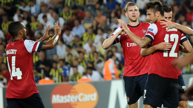 El once inicial de los Gunners fue: Szczęsny; Sagna, Mertesacker, Koscielny, Gibbs; Walcott y Cazorla por las bandas, Rosický, Ramsey y Wilshere en un tridente en el medio y Giroud en solitario. El equipo local alineó a: Volkan Demirel; Michal Kadlec, Bruno Alves, Joseph Yobo, Bekir İrtegün; Emre Belözoğlu, Mehmet Topal, Raul Meireles bastante adelantado; Dirk Kuyt en una banda y Moussa Sow y Pierre Webó al ataque.